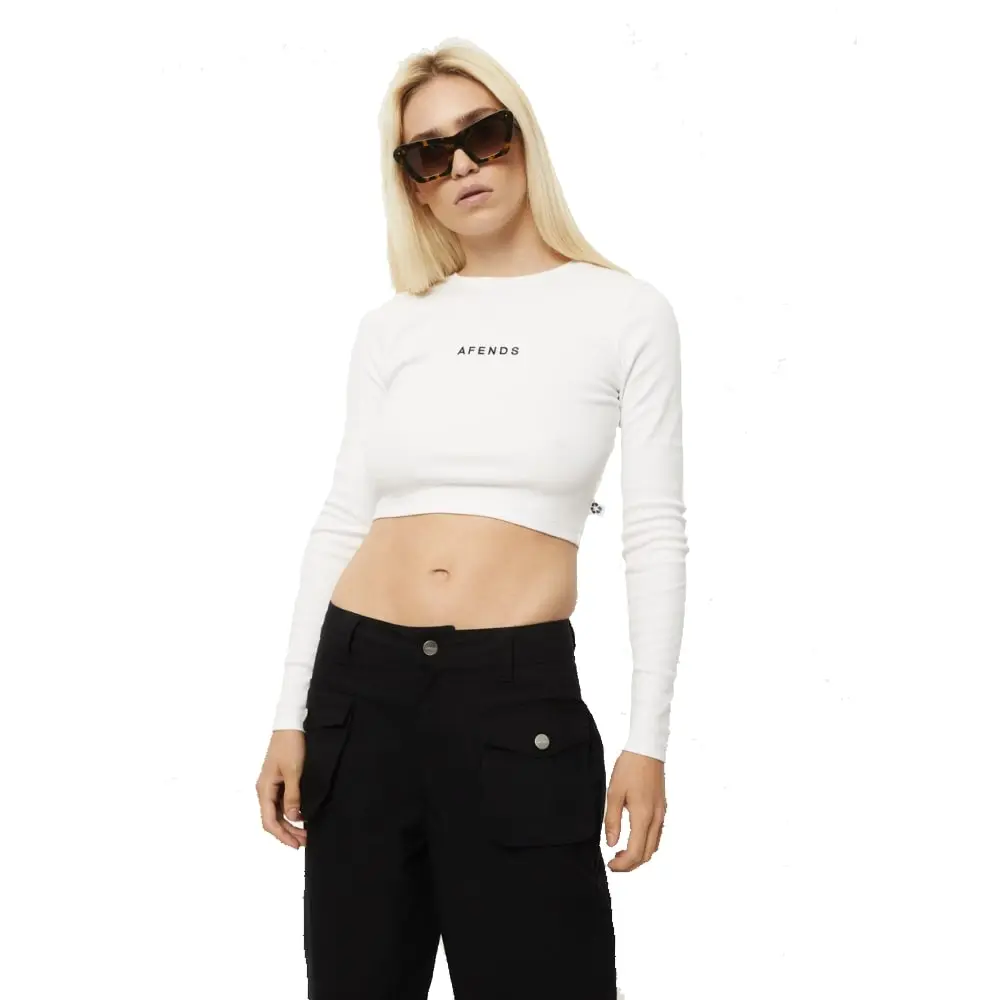Outfit opportunities are boundless in this long sleeve top. This cropped long sleeve provides the perfect layering piece with versatility and comfort at the forefront, crafted to flatter in a fitted fabric. Using eco friendly recycled cotton, Afends has created the perfect ribbed textured crop with stretch for comfort and simple logo design over the chest.