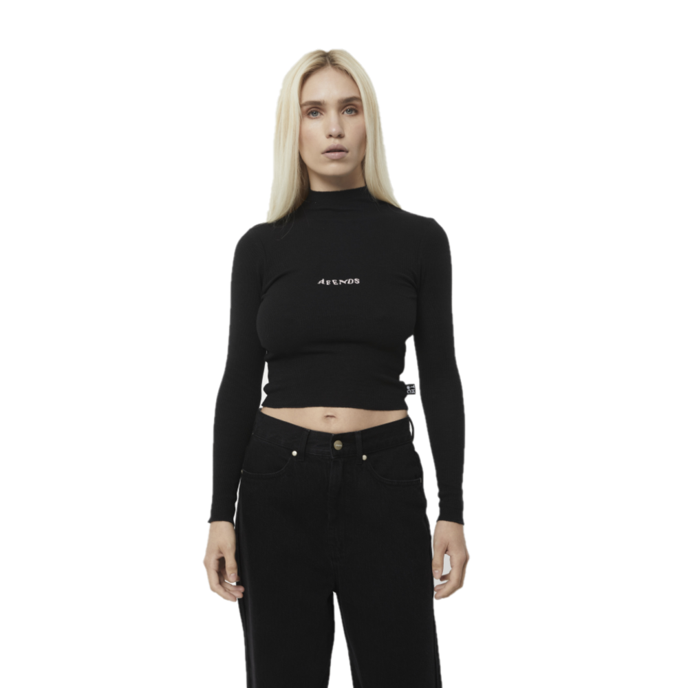 Simplicity is key in this high neck long sleeve top. Offering a premium, heavyweight and durable design in eco-friendly hemp rib with a slight stretch for all-day comfort. Featuring a fitted high-neck and a just above belly button crop.Â