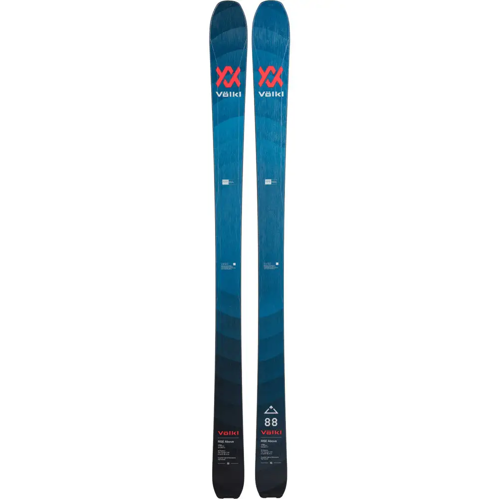 The 2023 Volkl Rise Above 88 with a 3D radius sidecut is the most versatile ski in the new touring ski range with impressive performance on both ascents and descents. The hybrid Tourlite wood core provides an impressive combination of minimal weight (1,186 g @ 170 cm) and ride smoothness and stability. The 3D radius sidecut has a highly resistant tip, which is especially useful when skiing in wind-blown snow conditions. The sidecut geometry provides both agility and maneuverability in narrow passages while the full sidewall offers great stability and resilience. For ski tours with a heavy backpack, the combination of a narrower waist under the boot and moderate shaping in the tip and tail areas helps skiers remain in control and requires less effort when changing direction.